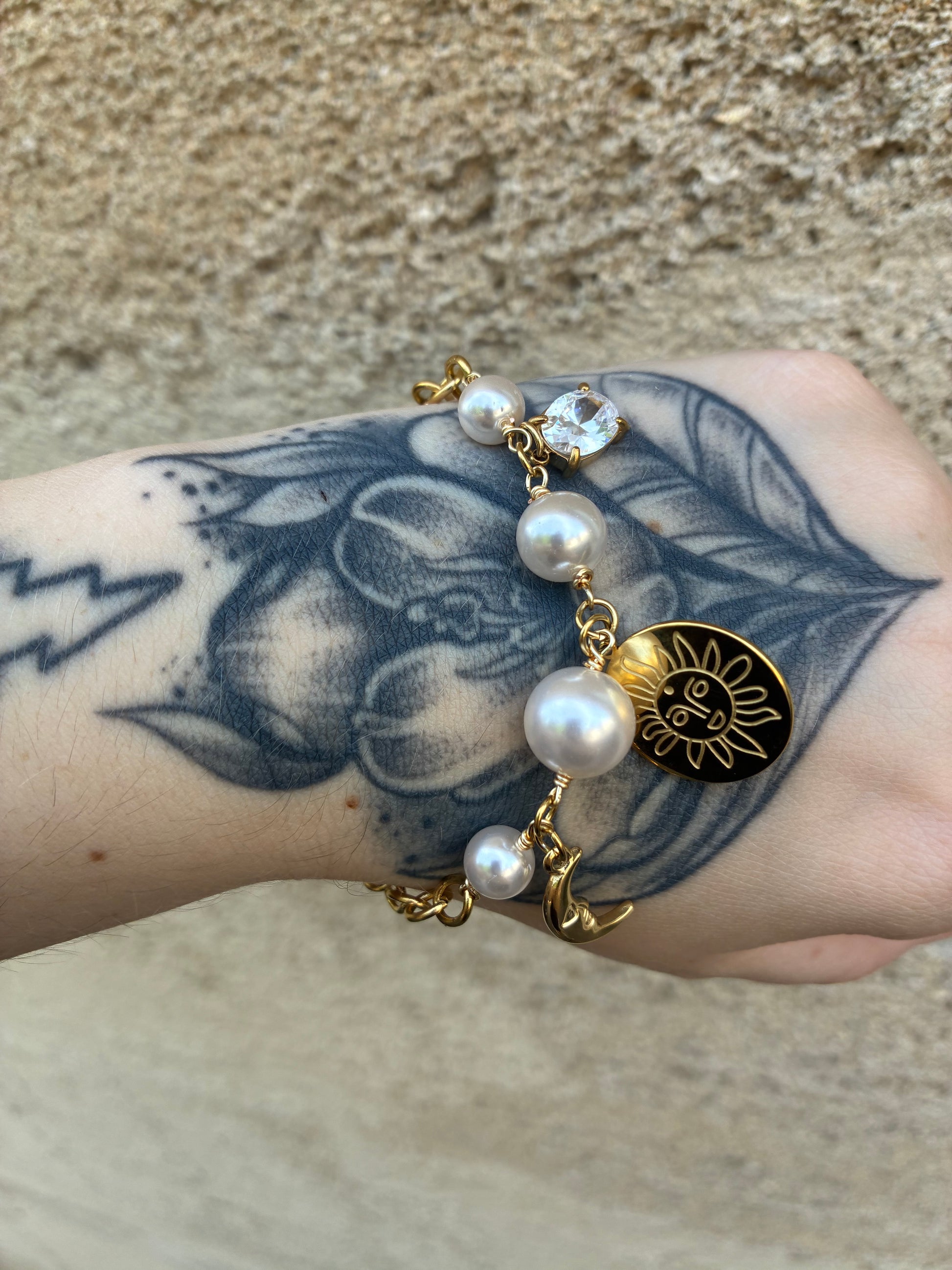 ✨ Bracelet Soleil Lune – Acier Perles Blanches