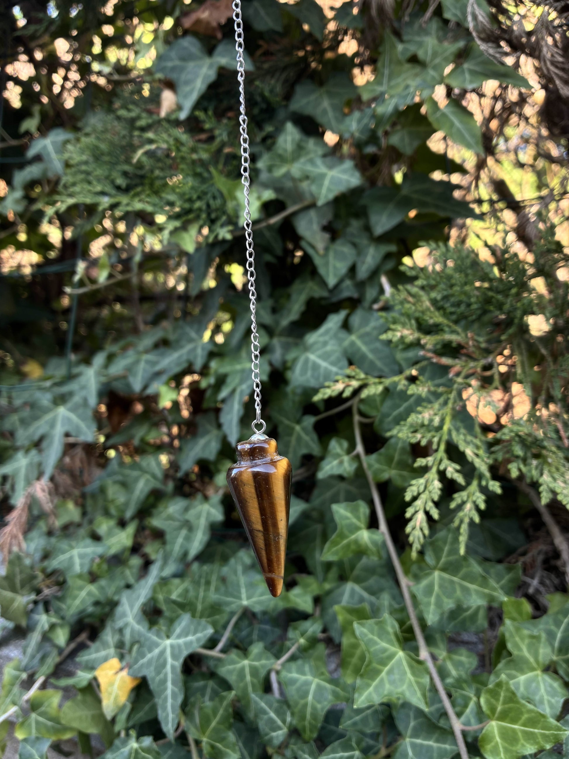 e pendule en œil de tigre taillé en forme de goutte allie esthétique et puissance. Parfait pour la radiesthésie, la protection énergétique ou le travail de concentration, il diffuse une énergie de confiance, de courage et de protection contre les influences extérieures.